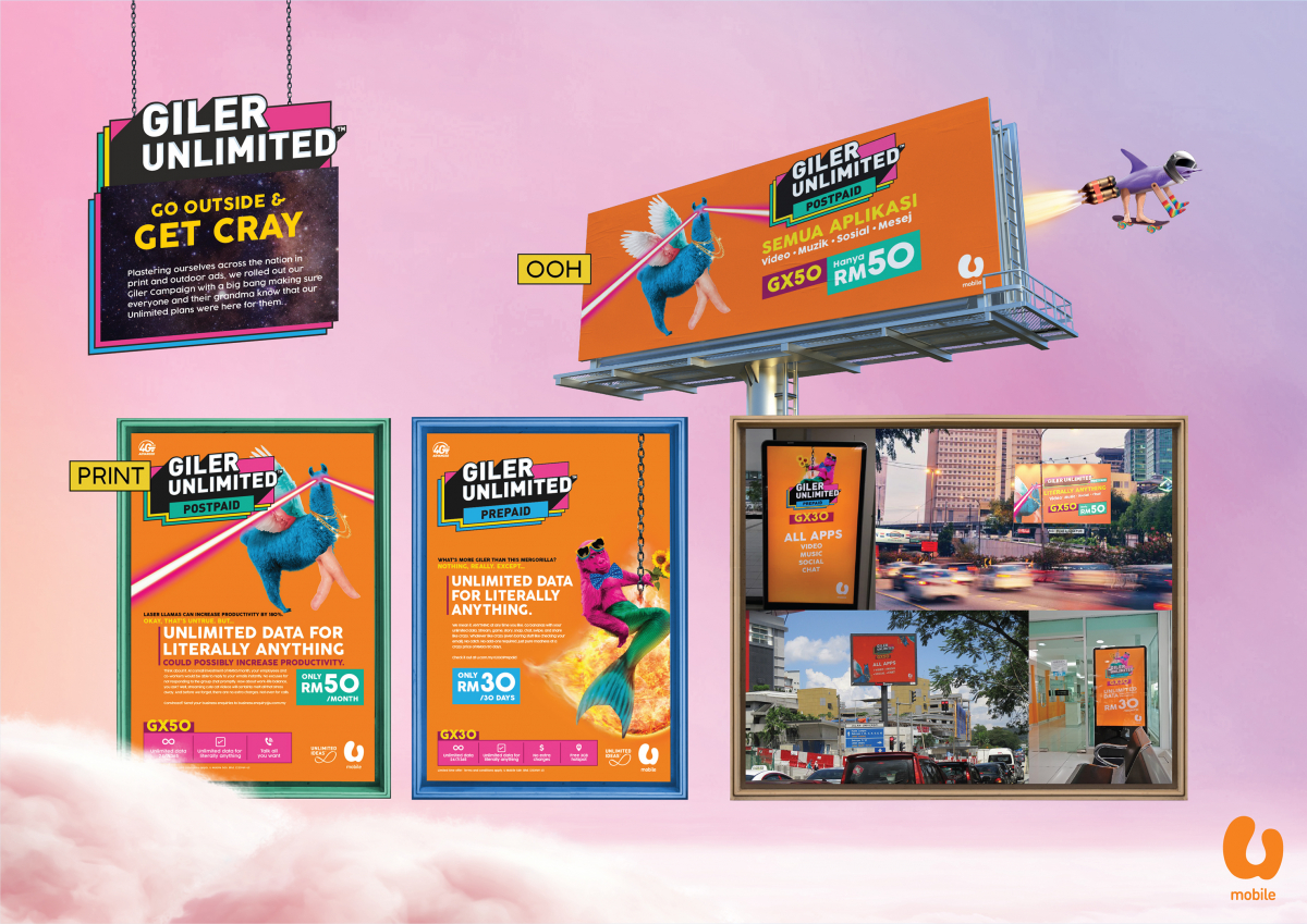 With our promise of unlimited data at crazy low prices, we created a world bigger than anyone’s imagination and launched Giler Unlimited. The idea was to roll out a telco campaign unlike any other flaunting a mobile data plan so unbelievably awesome, you’d be crazy for not signing up. To amp things up even further, we unleashed our Giler gang - a bunch of quirky characters - to conquer every space, every touchpoint. From fun videos with an earworm rap to outdoor billboards, we painted the whole nation orange. We weren’t trying to be ‘young’, ‘cool’ or ‘trendy’. We simply unleashed our inner Giler and that spoke to our audience.